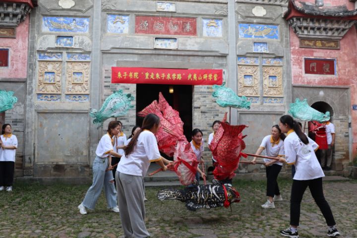 中国青年网南平7月30日电(通讯员 戴莹莹 王栎淇)2021年7月15日至7月22日,集美大学诚毅学院“寻熹人文”暑期社会实践队于福建省南平市五夫镇开展了暑期“三下乡”社会实践活动。五夫镇素有“邹鲁渊源”之称,历史悠久,历代名人辈出,境内遗址遗迹丰富。为了号召更多大学生加入传承好、维护好中华优秀传统文化的行列,并帮助当地宣传朱子文化和打造朱子IP。实践期间,队员们在五夫镇开展以学习古琴课、举行敬师礼仪式、表演龙鱼戏为主要内容的民俗与国学体验活动。活动过程中,实践队通过视频实录、微信推送、微博发布等新媒体宣传对外界展示古镇美景的同时,也向大众呈现了古镇深厚的文化底蕴。