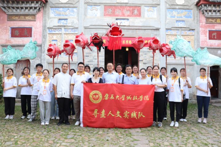 图为龙鱼戏表演结束,队员们与当日前来视察的院领导们共同在兴贤书院门前合影留念。中国青年网通讯员 林致远 摄