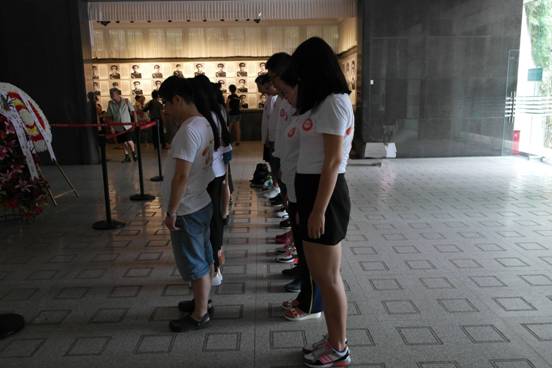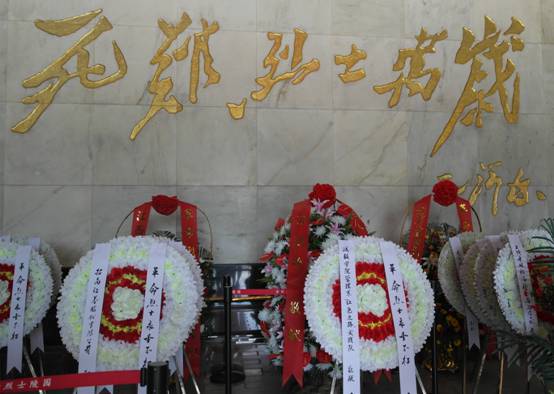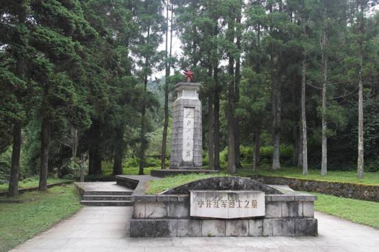 井冈山根据地革命烈士陵园于1987年10月在北岩峰落成,占地26.68公顷。整个陵园分陵园门庭、纪念堂、碑林、纪念碑、雕塑园五部分。一座具有象征意义的“井冈山革命烈士纪念碑”矗立在北山。远看,纪念碑像一团跳动的星星之火,寓意“星星之火,可以燎原”;近看,又好似一杆枪支,代表着“枪杆子里出政权”。安静而肃穆,无声却庄严,两位队员抬着花圈走在最前面,其他队友排成两列,没有人喊口令,我们的步伐却是那样的默契铿锵,许多旁人也驻足观看。献上花圈,向烈士们三鞠躬、默哀,此刻每个队员的心灵都被革命烈士的信念和精神所撼动。整个参观过程带给我们的不仅仅是震撼!斯人已逝,风范长存,惟愿吾辈,继承遗愿。
